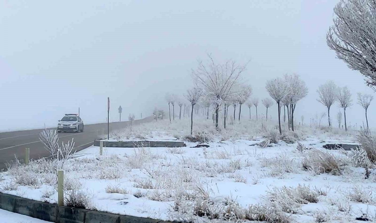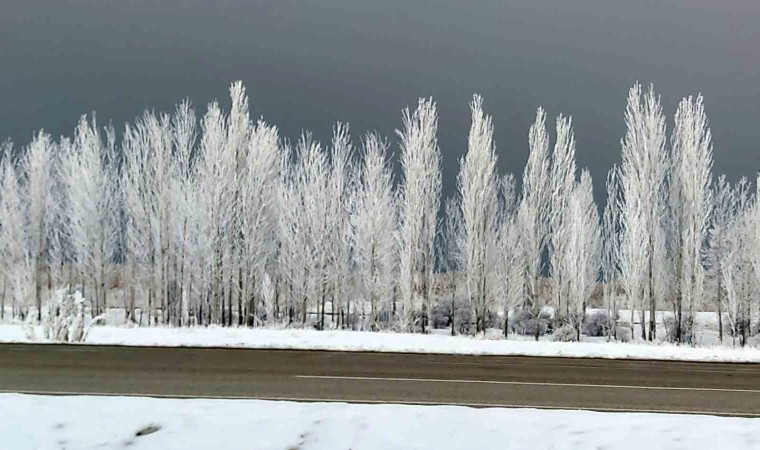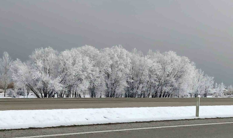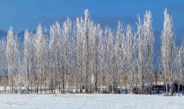 Van’da etkili olan sis görüş mesafesini düşürdü, kırağı tutan ağaçlar kartpostallık görüntüler oluşturdu.