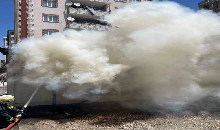 Edinilen bilgiye göre, yangın, saat 11.10 sularında Vali Mithatbey Mahallesi Cemallar Sokak’ta bulunan bir oto yıkamada meydana geldi. Oto yıkama içerisinde kurulu bulunan konteynerde bilinmeyen bir sebepten dolayı çıkan yangın kısa sürede büyüyerek yanın park halinde olan bir otomobile de sıçradı. Haber verilmesi üzerine kısa sürede olay yerine gelen İpekyolu İtfaiye Grup Amirliği ekipleri, yangına müdahale etti. Ekiplerinin müdahalesiyle konteyner ve otomobil söndürülürken, konteyner içerisinde bulunan 3 adet kanepe, 2 adet kamera monitörü, 2 adet laptop bilgisayar, çay ocağı, 5 adet kışlık araç lastiği, güvenlik kameraları, kayıt cihazı ve bir miktar para yandı.