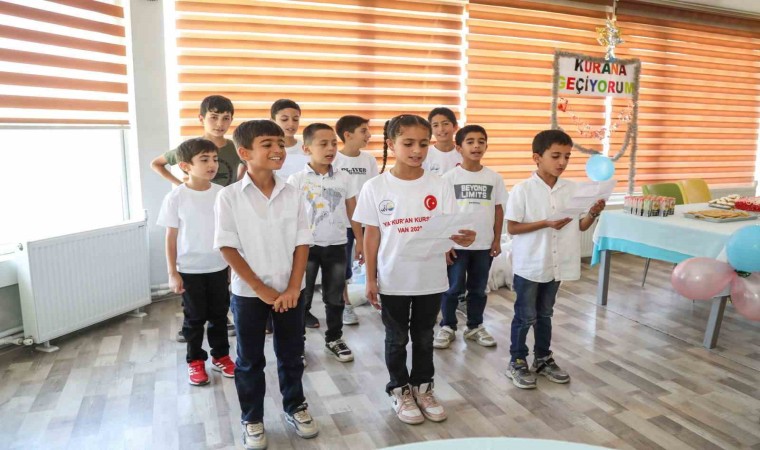 Van Büyükşehir Belediyesi, yaz tatilinde 7-15 yaş arası çocuklara yönelik açtığı Kur’an kursu, 68 kursiyerin Kur’an-ı Kerime geçmesiyle tamamlandı. Kadın ve Aile Hizmetleri Dairesi Başkanlığı bünyesinde yer alan hocalar tarafından verilen elifba derslerinin ardından Kur’an-ı Kerim’e geçmenin heyecanını yaşayan çocuklar için program düzenlendi. Kur’an-ı Kerim tilaveti ile başlayan program bünyesinde ilahiler ve dualar okundu. Programda çocuklara çeşitli ikramlar ve hediyeler verildi.