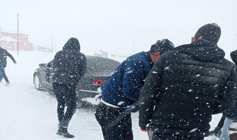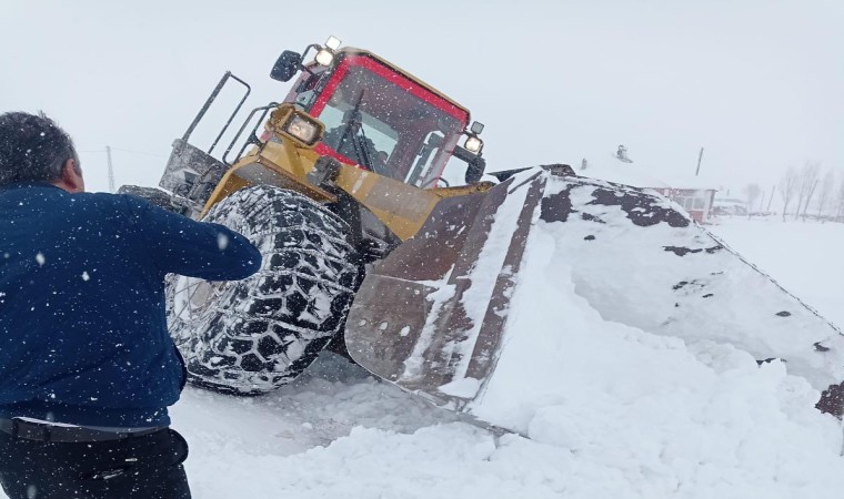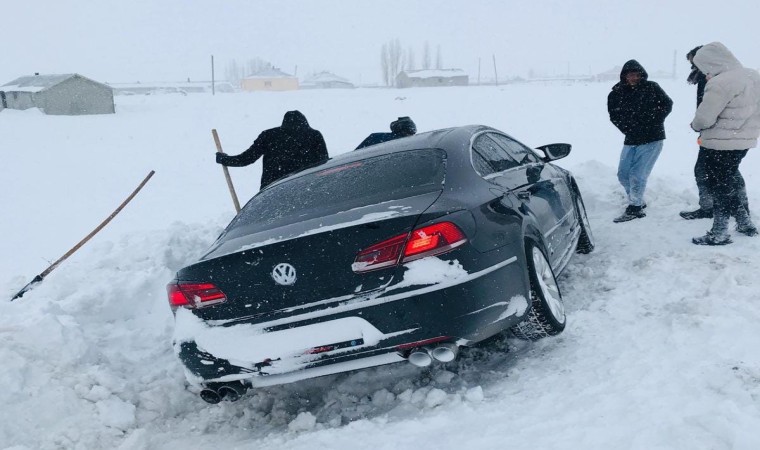 Van’ın Çaldıran ilçesinde karda mahsur kalan otomobili kurtarmaya giden iş makinesi de kara saplandı.