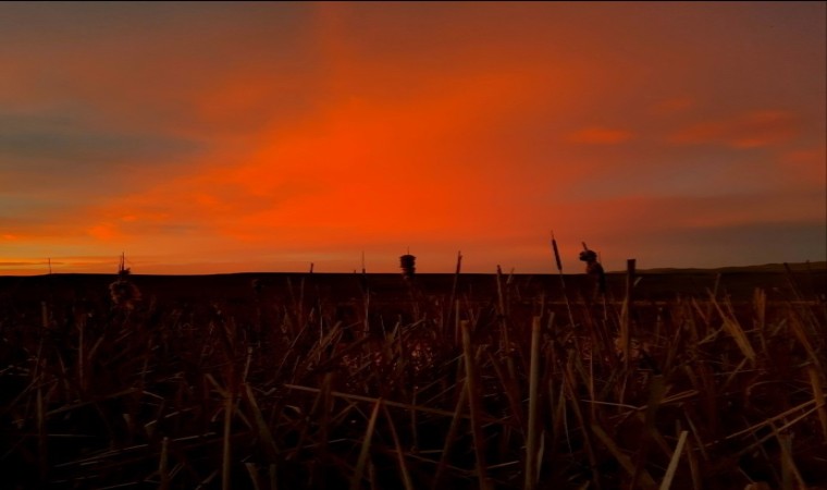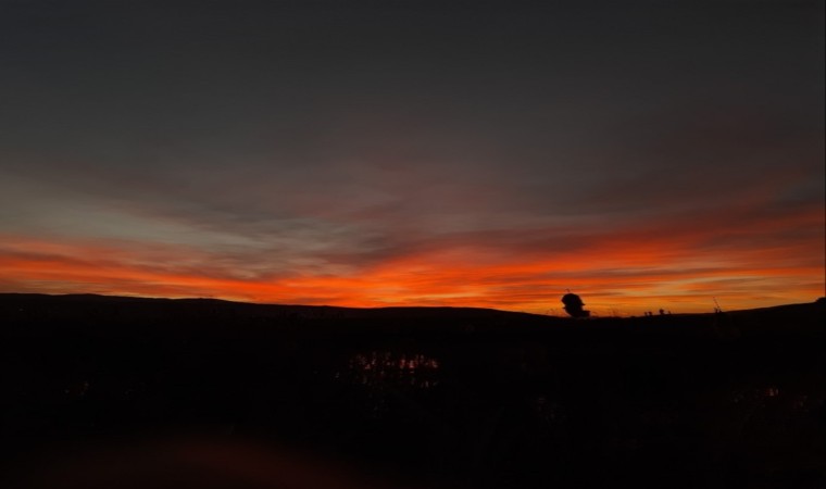 Van’ın Özalp ilçesinde görünen kuzey ışıkları gökyüzünü adeta kırmızıya boyadı.