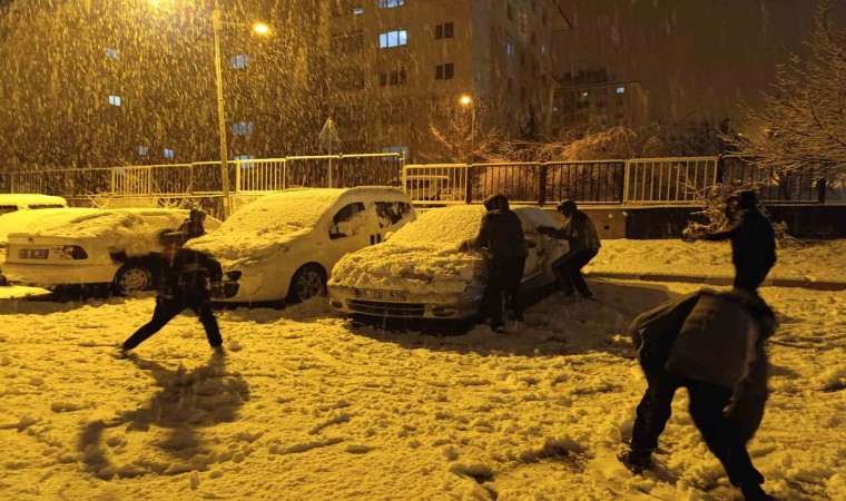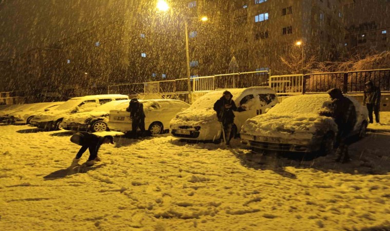 Van’da sabah saatlerinden itibaren aralıksız olarak etkili olan sağanak, akşam saatlerinde yerini kar yağışına bıraktı.