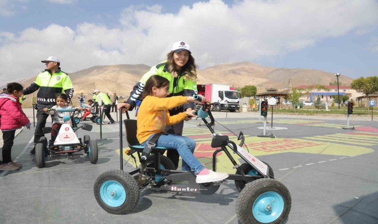 Van’ın Başkale ilçesine getirilen Emniyet Genel Müdürlüğüne ait "Mobil Trafik Eğitim Tır’ı sayesinde çocuklar hem eğlendi hem de bilgilendirildi.