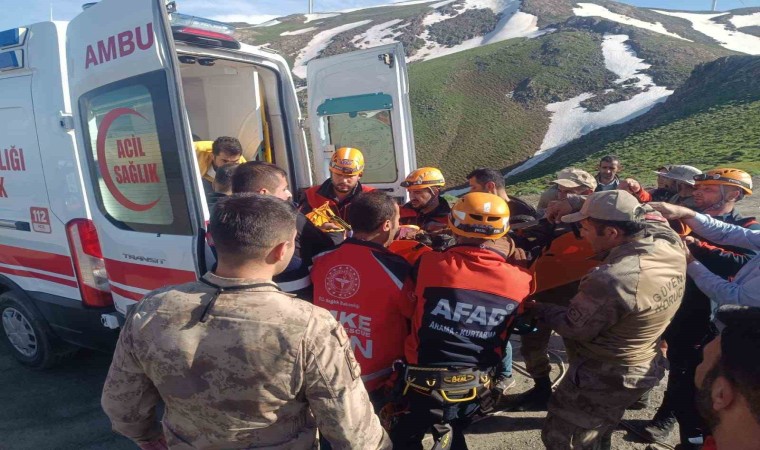 Van’ın Gevaş ilçesinde kayalık bölgede ot toplamaya giderken düşerek yaralanan şahıs, AFAD ve UMKE ekiplerince kurtarıldı.