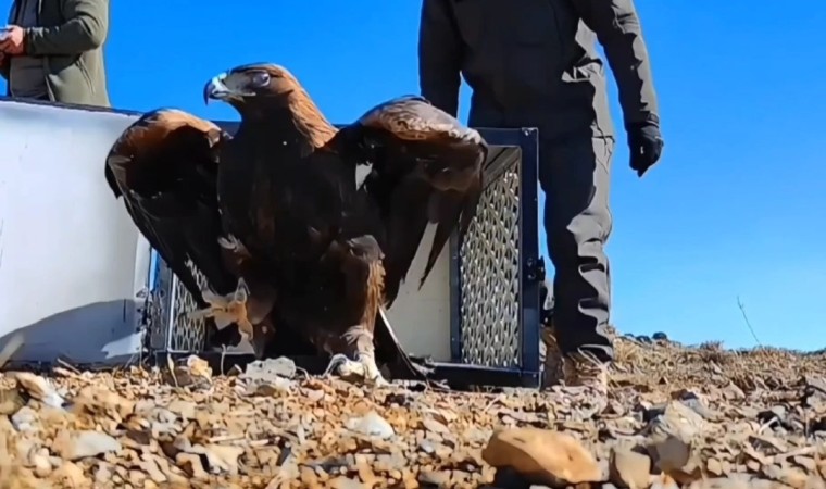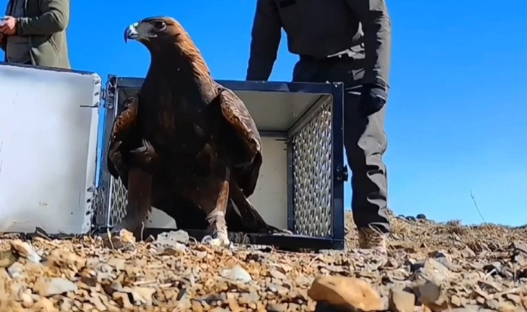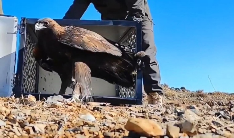 Hakkari’de doğada bitkin halde bulunan kaya kartalı, Van’daki tedavisinin ardından doğal yaşam alanına bırakıldı.