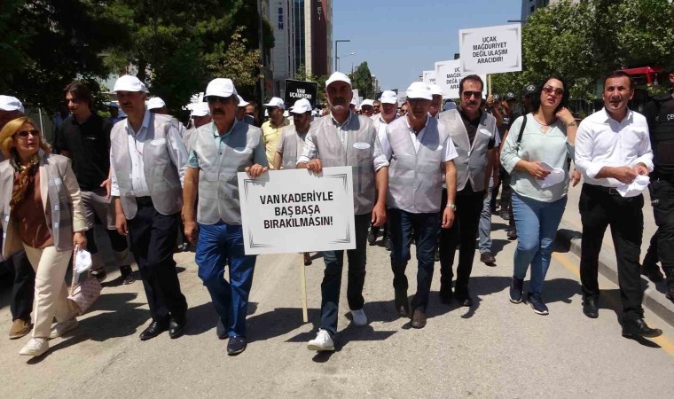 Van’da bir araya gelen turizmciler ile acente temsilcileri, yetersiz uçak seferlerine ilişkin bir yürüyüş gerçekleştirdi.