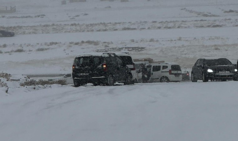 Van’da etkili olan yoğun kar yağışında yollar kar ve buzla kaplanırken, uçak seferleri de iptal edildi.