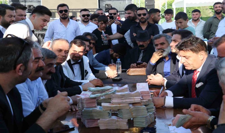 Van’daki Gevdan Aşiretinin düğün töreninde gelin ve damada 6 milyon TL değerinde takı takılırken, masaya konan paraları ise 15 kişi saydı.