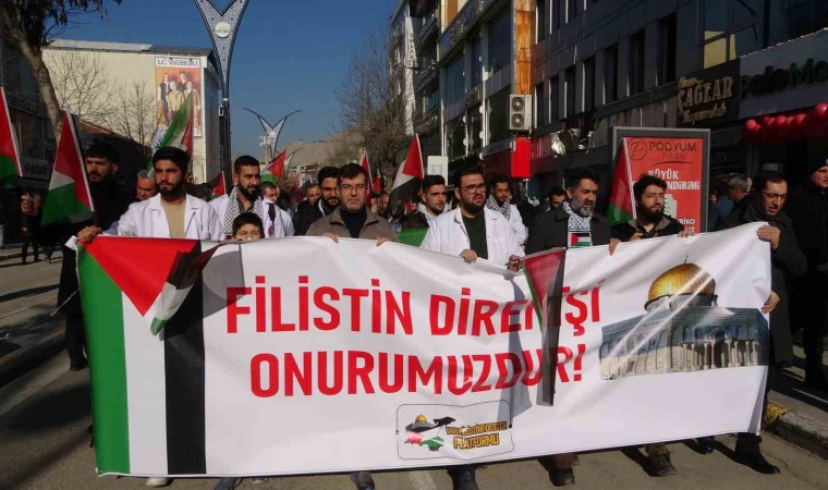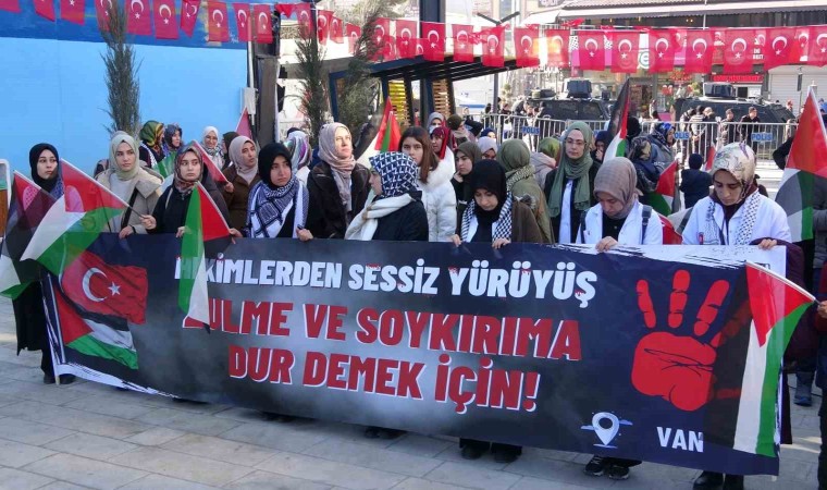 Van’da görev yapan sağlık çalışanları, Filistin’e yapılan saldırılara dikkat çekmek amacıyla başlattıkları sessiz yürüyüşlerine bu hafta da devam etti.