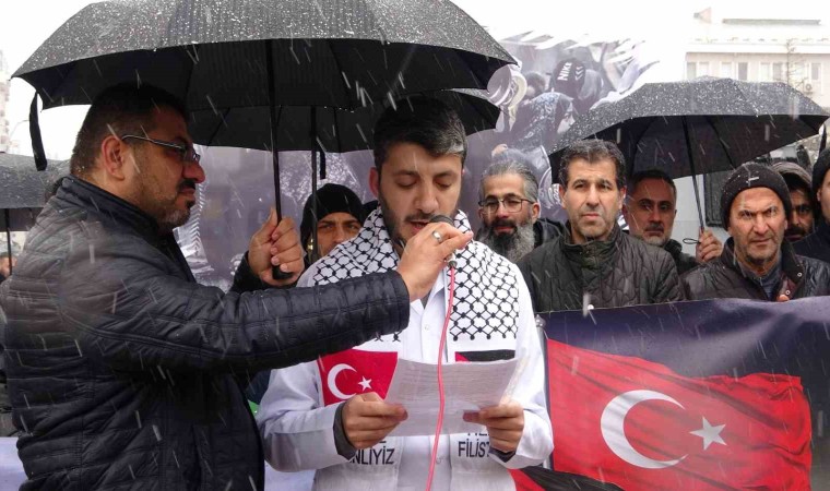 İsrail’in Gazze Şeridi’ne yönelik saldırıları 7 Ekim 2023 tarihinden bu yana devam ediyor. Dünyanın birçok yerinde olduğu gibi Türkiye’de de saldırılara protestolar sürüyor. Bu kapsamda sağlık çalışanları tarafından Türkiye geneli başlatılan protestolar ise 19’uncu haftasına girdi. Program çerçevesinde bu hafta da Van’ın Beşyol Meydanı’nda bir araya gelen çok sayıda sağlık çalışanı, kar yağışı altında düzenlenen basın açıklamasıyla saldırıları kınadı.