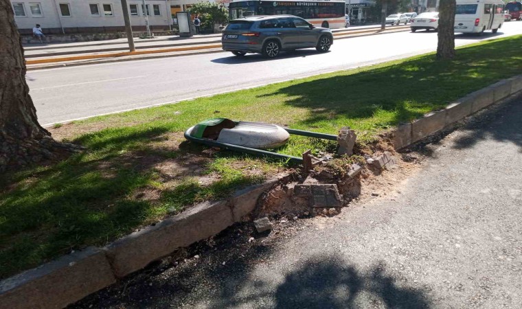 Eskişehir’de belediyeye ait olan bir çöp kutusunun kimliği belirsiz kişi veya kişiler tarafından yerinden sökülmesi tepki çekti.
