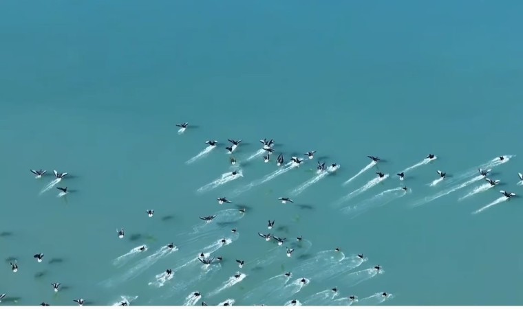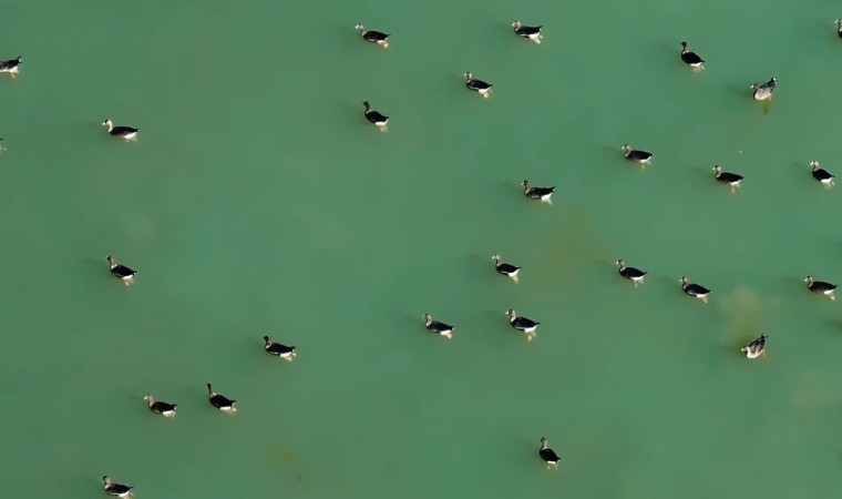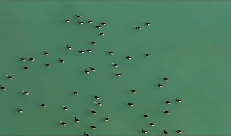 Her yıl belirli dönemlerde Van Gölü havzasındaki sulak alanlara renk katan yaban kazları, bu yıl yine geldikleri Erçek Gölü kıyısında görsel şölen oluşturdu.