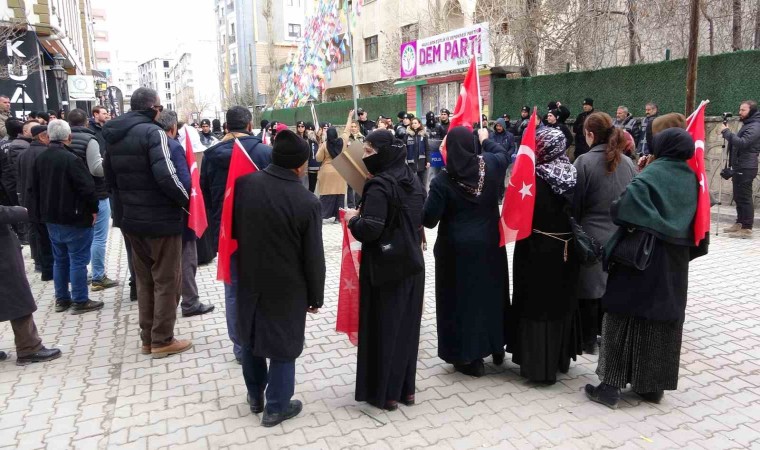 Van’da terör örgütü PKK tarafından çocukları dağa kaçırılan aileler 76’ıncı haftada da eylemlerini sürdürüyor. Evlatları değişik tarihlerde PKK terör örgütü tarafından dağa kaçırılan 35 aile, ellerindeki dövizlerle DEM Parti İl Örgütü binası önüne kadar yürüdü. DEM Parti ve PKK aleyhine slogan atan aileler, seslerinin yüksek sesli müzikle bastırılmasına da tepki gösterdi.