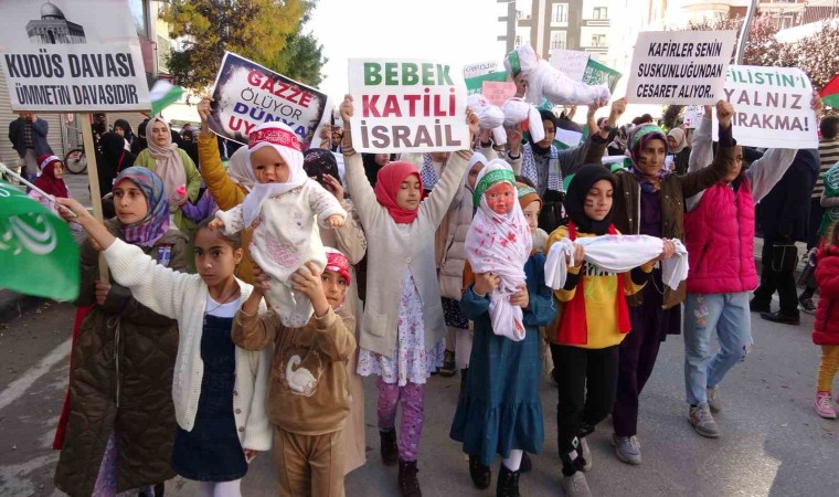 Vanlı kadın ve çocuklar, İsrail’in Gazze’de gerçekleştirdiği soykırımı protesto etmek ve Filistinlilere destek olmak için yürüyüş düzenledi.