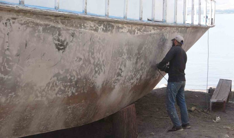 Van Gölü’nde endemik bir tür olan inci kefalini avlayarak geçimini sağlayan balıkçılar, teknelerini onarımdan geçirerek kış sezonuna hazırlık yapıyor.