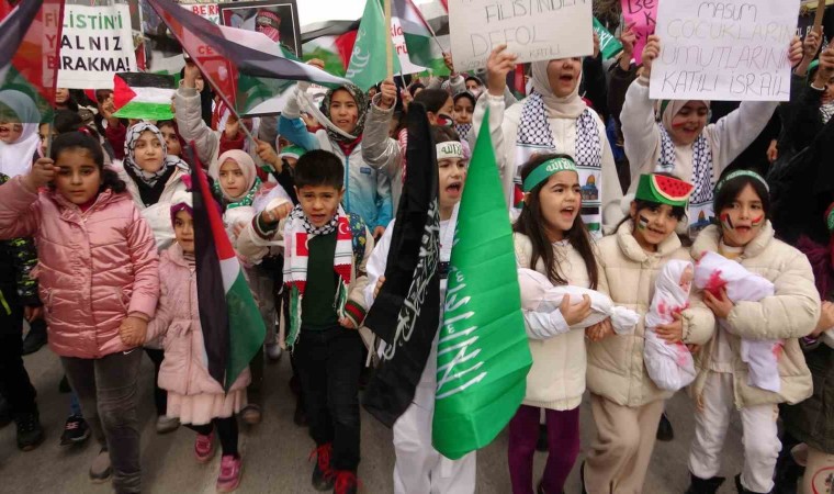 Van’da yaşları 15’ten küçük çocuklar, İsrail’in saldırıları sonucu hayatını kaybeden Gazzeli çocuklar için yürüdü.