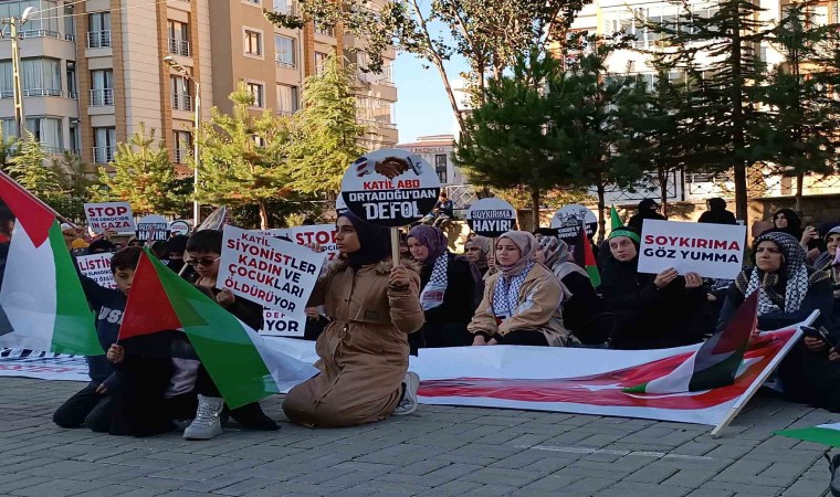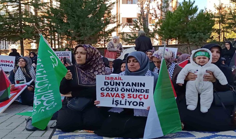 Van’da faaliyet yürüten sivil toplum kuruluşların kadın kolları tarafından oluşturulan Filistinli Kadınlarla Dayanışma İnisiyatifi öncülüğünde düzenlenen oturma eyleminde İsrail saldırıları kınandı. İsrail’in kadın ve çocuk ayrımı yapmaksızın gerçekleştirdiği katliamlar, Yukarı Nurşin Camisi’nde gerçekleştirilen basın açıklaması ve oturma eylemiyle protesto edildi. İnisiyatif adına basın açıklamasını okuyan Yıldız Doğan, vicdan sahibi STK’ların kadın temsilcileri ve anneler olarak İsrail’in Gazze Şeridi’nde 15 gündür sürdürdüğü katliama dur demek için toplandıklarını belirtti. Kendileriyle aynı duyguları paylaşan herkesi İsrail’in Gazze Şeridi’ne yönelik saldırılarını bir an önce durdurması için harekete geçmeye davet ettiklerini ifade eden Doğan, “Gazze Şeridi’ne yönelik yıllardır süren bombalı saldırılarda sahilde piknik yapan aileleri, sokakta oyun oynayan çocukları, hastanelerde tedavi bekleyen hastaları, ibadethaneleri, insanın en güvenli sığınağı olan evlerinde aileleri, en çok da kadın ve çocukları hedef aldı. Ve maalesef Gazze’de hiçbir yer güvenli değil. Gazze’de devam eden saldırılarda okullar, camiler, hastaneler vurularak dünyanın gözü önünde savaş suçu işleniyor. Bu sürecin son halkası olarak Gazze Şeridi’nde gerçekleştirdiği katliamlarda yine yüzlerce kadın ve çocuk işgalcilerin açık hedefi oldu. 17 Ekim Salı gecesi İsrail’in El-Ehli Baptist Hastanesi’ni bombalaması sonucu büyük bir kısmı çocuk ve kadınlardan oluşan 500’den fazla insan katledildi. İşgalci İsrail, daha güvenli olduğunu düşündükleri için sığındıkları hastanenin bahçesinde oyun oynayan, yemek yiyen ve savaş ortamında yaşama tutunmaya çalışan masum çocuk ve kadınları vahşice katletti. Anneler ve babalar çocuklarının paramparça olan cesetlerini toplayıp poşetlere koyarak defnetmek zorunda kaldı” dedi.