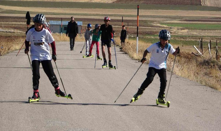 Van’da elde ettikleri başarılarla göz dolduran kayaklı koşu milli takım sporcuları, asfalt yolda antrenman yaparak şampiyonalara hazırlanıyor.