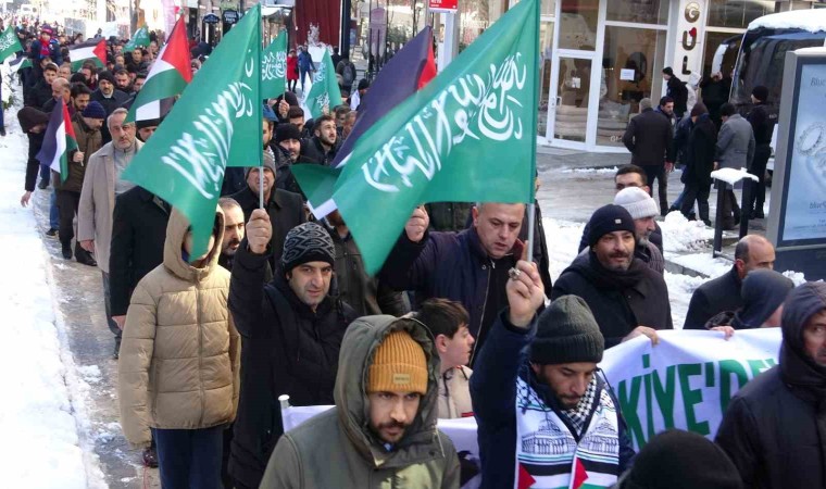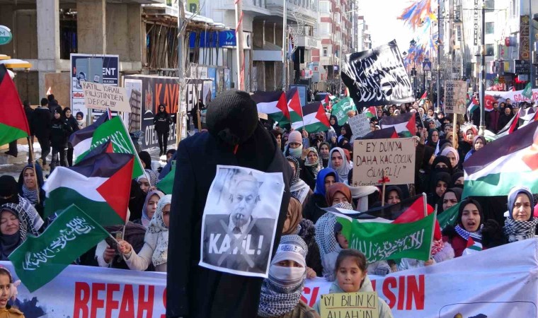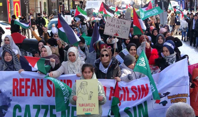 Van Filistine Destek Platformu üyeleri tarafından İsrail’in saldırıları altındaki Gazze için soğuk havaya rağmen yoğun katılımlı bir yürüyüş gerçekleştirildi.