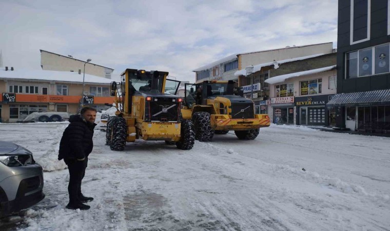 Muş’un Varto Belediyesi, ilçede akşamdan beri etkili olan kar yağışının ardından temizleme çalışması başlattı.