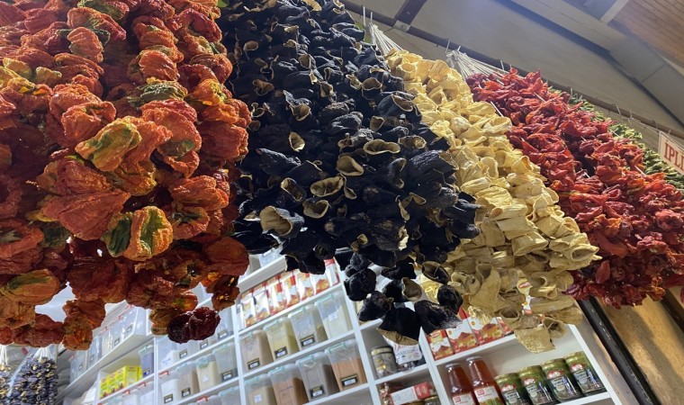 Kış mevsiminin vazgeçilmezi ve yazında dolma yemeği yapmakta kullanılan yeni mahsul kurutmalık patlıcan, biber, kabak, acur raflardaki yerini aldı.