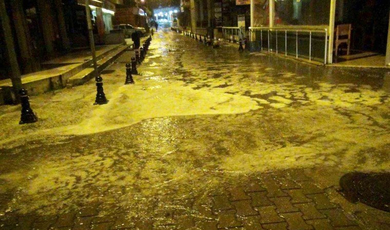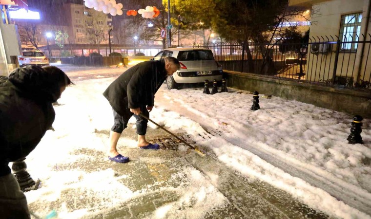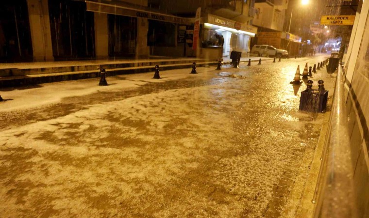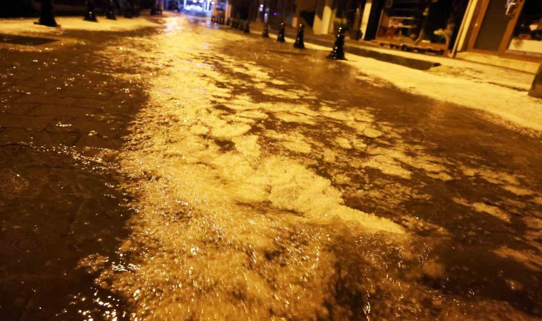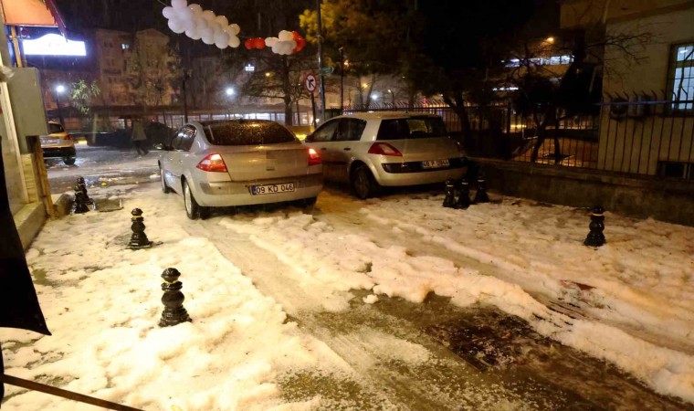 Dolu yağışı sonrası yağan yağmur suları ile birlikte caddelerden akan yağmur suyu caddeleri beyaz tabakaya bürüdü. Dolu yağışı sonrası mazgallar tıkanırken, vatandaşlar iş yerlerine su girmemesi için dolu ile tıkanan mazgalları kürekle açmaya çalıştı. Tıkanan mazgalı açmaya çalışan bir vatandaş, “Ben bu yaşıma geldim, böyle dolu yağışı görmedim. Mazgalları tıkadı” dedi.