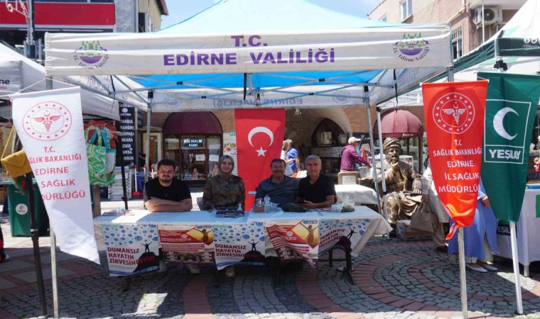 Edirne İl Sağlık ve Halk Sağlığı Müdürlüğü ekipleri tarafından “31 Mayıs Dünya Tütünsüz Günü” dolayısıyla kentin en işlek noktalarından birisi olan Saraçlar Caddesi’nde stant açıldı. Açılan stantta vatandaşları çeşitli broşürlerle bilgilendiren ekipler, ayrıca sorularını da yanıtladı.