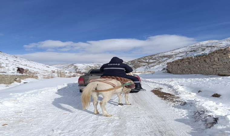 Van’da kar yağışı nedeniyle köy ve mezralarda yaşanan elektrik kesintilerini gidermek için mücadele başlatan Vangölü Elektrik Dağıtım A.Ş. (VEDAŞ) ekipleri, arazi yapısından dolayı araçlarla ulaşamadıkları bölgelere ise köylülerden aldıkları atlarla ulaşarak arızalara müdahale ediyor. Kışın sert ve çetin geçtiği Başkale ilçesinde yer yer iki metreyi aşan karda elektrik hatlarındaki arızaları gidermeye çalışan VEDAŞ ekipleri, özellikle hava sıcaklığının sıfırın altında 20 dereceyi geçtiği kırsalda elektrik arızalarına zamanında müdahale etmek için yoğun çaba sarf ediyor. Kentte en fazla elektrik arızalarının yaşandığı ilçelerin başında gelen Başkale’de görev yapan VEDAŞ ekipleri, ilçeye bağlı dağlık alanda meydana gelen elektrik arızalarına müdahale etmek için tüm yolları deniyor. Son olarak gelen ihbar üzerine ilçeye 60 kilometre uzaklıkta bulunan Esenyamaç Mahallesi’ne giderek araçlarını köye bırakıp kırsaldaki arızalı hata ulaşmak isteyen ekipler, araçların gidemediği bölgede iki metreyi bulan karda yürüyemeyince köylülerden yardım istedi.
