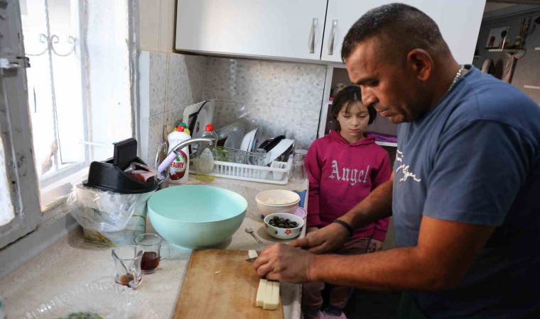 “Babamı çok seviyorum. Okuldan geldikten sonra babamız yemek yapıyor, sobayı yakıyor. Sevdiğimiz yemekleri yapıyor. Mesela ben kuru fasulye ve pilavı seviyorum. Çok güzel yapıyor. Her yemeği yapıyor benim babam.”