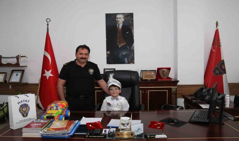 HATAY (İHA) – Hatay İl Emniyet Müdürü Kadir Gökce, 2020 yılında vefat eden polis memurunun evladını sünnet gününde makamında ağırlayarak hediye verdi.