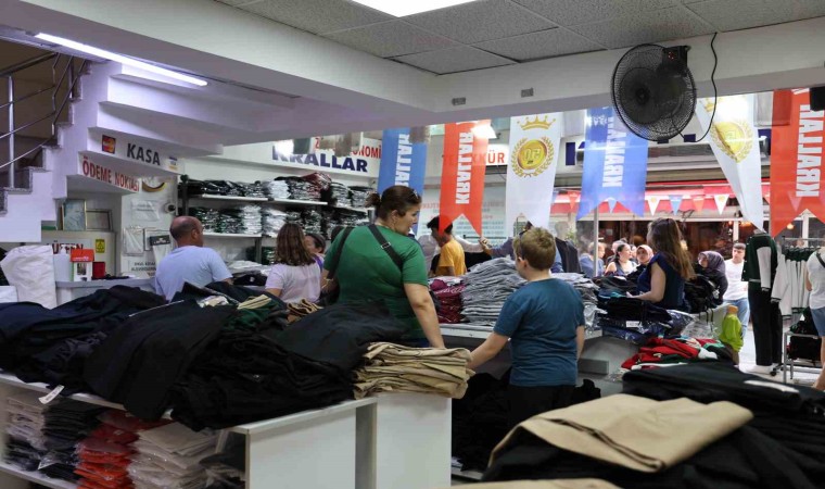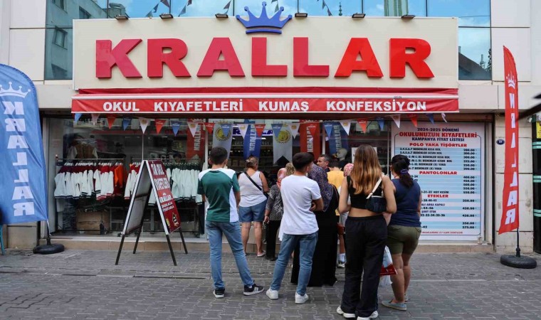 Eğitim ve öğretimin başlamasıyla okul kıyafeti telaşına düşen veliler, İzmir’de 50 yıldır hizmet veren bir giyim mağazasının indirim kampanyasını duyunca kapısında uzun kuyruklar oluşturdu.