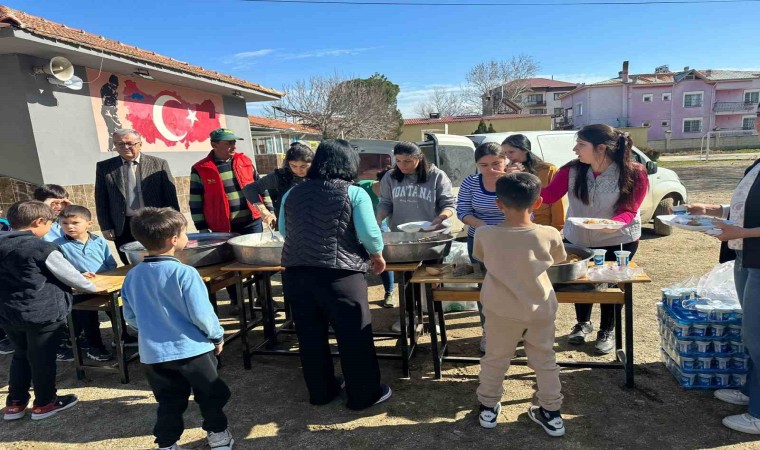 Okul bahçesinde 250 kişiye verilen yemek sonrasında öğretmenler veli toplantısı yaparak öğrencilerin durumları hakkında ailelerini bilgilendirdi.