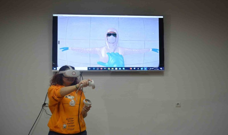 Veteriner adaylarının gerçek hayatta yapacağı otopsi işlemlerini VR gözlükler sayesinde bir simülasyonun içerisinde deneyimleyebildiklerini belirten Prof. Dr. Vural, "Uygulamada gördüğünüz üzere önce giyinme, hazırlanma, salon girişlerinde dezenfeksiyona uğrama, kişinin kendi koruma önlemlerini alması ve akabinde salona geçerek nekropsi gerçekleştirmesini sağlıyoruz" diye konuştu.