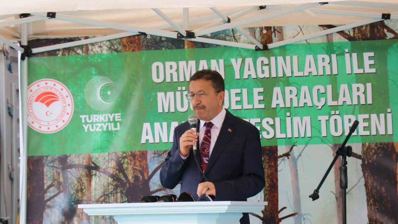 Mevsimlerin değiştiğine dikkat çeken Tarım ve Orman Bakan Yardımcısı Veysel Tiryaki, "Şu anda dünyada artık mevsimler değişiyor. Dünyanın birçok ülkesinde bu mevsimde bile orman yangınları devam ediyor. Sizlerin verdiği vergilerle toplanan paraları orman mücadelesinde kiraladığımız uçaklara büyük paralar ödeniyor. Burada rakamları söylemek istemiyorum. Yangınla mücadele konusu başta olmak üzere ve bu araçlar sadece yangında değil diğer işlerde de kullanılacak var. Dozerler, greyderler kamunun, devletin, milletin ihtiyacı olan her yerde kullanılacak. Bu iklim değişikliğine paralel olarak başlayan yangınlardan dolayı her yıl devletin önemli bir parası, bütçesi maalesef dışarıdan kiraladığımız uçakları kiralamalara gidiyor. Birkaç ay önce başladığımız bu araçların alımlarıyla ilgili Türkiye’deki orman bölgeleri başta olmak üzere, yangın ihbarı olan yüksek yerlere bu araçları aldık ve bölgelere gönderdik. Sadece şu kadarını söyleyeyim, her vilayete bu kadar araç geldiğini zannetmeyin. Bunu baştan söylemiş olayım. Birkaç ay içerisinde bu aldığımız araç kadar daha araç olacağız. Şu anda alacağımız kurumlarla pazarlıkları yapılıyor. Bunlara ihtiyacımız vardı" dedi.