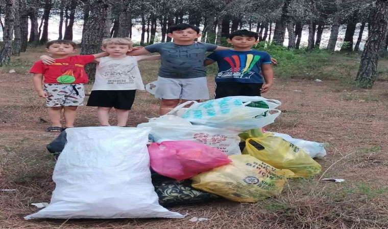 Samsun’un Vezirköprü ilçesinde pikniğe giden çocuklar, doğadaki çöpleri toplayarak çevre bilinci örneği sergilediler.