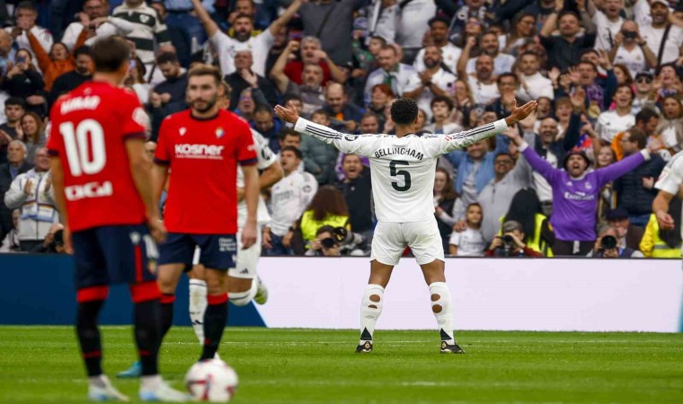 İspanya La Liga’nın 13. haftasında Real Madrid, sahasında Osasuna ile karşılaştı. Temposuz geçen ilk dakikaların ardından eflatun-beyazlılar 34. dakikada 1-0 öne geçti. Vinicius Junior, Bellingham’dan aldığı topla sol çaprazdan ceza sahasına girerek yaptığı vuruşta topu filelere gönderdi. Müsabakanın 42. dakikasında Lucas Vazquez kendi yarı alanından uzun topla Bellingham’ı topla buluşturdu. Bellingham’ın ceza sahası içinde yaptığı tek vuruşla topu kaleci Sergio Herrera’nın üzerinden aşırtarak farkı ikiye çıkardı. İngiliz futbolcu bu sezon ilk kez gol sevinci yaşadı. Real Madrid, ilk yarıyı 2-0 önde kapatırken, sakatlık nedeniyle 3 kez zorunlu değişikliğe gitti. Rodrygo ve Eder Militao, ilk 45’te kenara gelirken, Lucas Vazquez de 46. dakikada yerini Luka Modric’e bıraktı.
