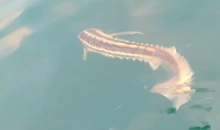 Sakarya’nın Karasu ilçesinde Karadeniz’e açılan bölge balıkçılarının ağına nesli tükenmekte olan Mersin balığı takıldı. Balık suya geri bırakılırken, bu anlar cep telefonu kamerasıyla kayda alındı.