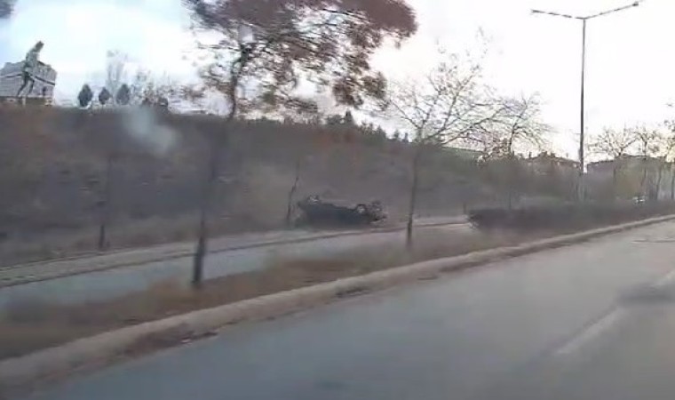 Eskişehir’de hızlı girdiği virajda kontrolden çıkan otomobilin takla attığı anlar, karşı şeritten gelen bir otomobilin yol kamerası tarafından saniye saniye kaydedildi.