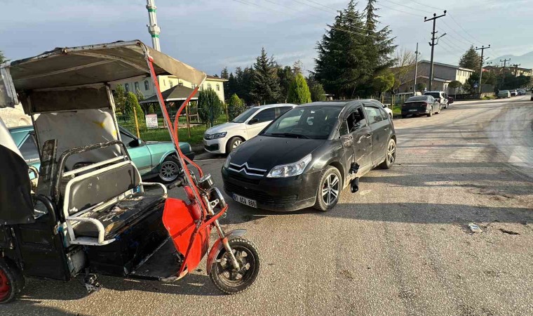 Düzce’de 3 tekerlekli motosiklet viraja sert girince otomobile çarptı. Kazada 1 kişi yaralanırken, motosikletin sahipleri olay yerinde ortalığı birbirine kattı.