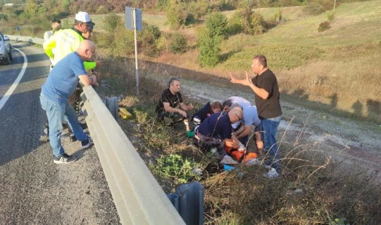 Hasan BOZBEY/ ORHANGAZİ (Bursa), (DHA)- BURSA’nın Orhangazi ilçesinde, virajda kontrolden çıkarak bariyere çarpan motosikletin sürücüsü Hakan Y. (40) ile arkasındaki Hülya B. (35), ağır yaralandı.