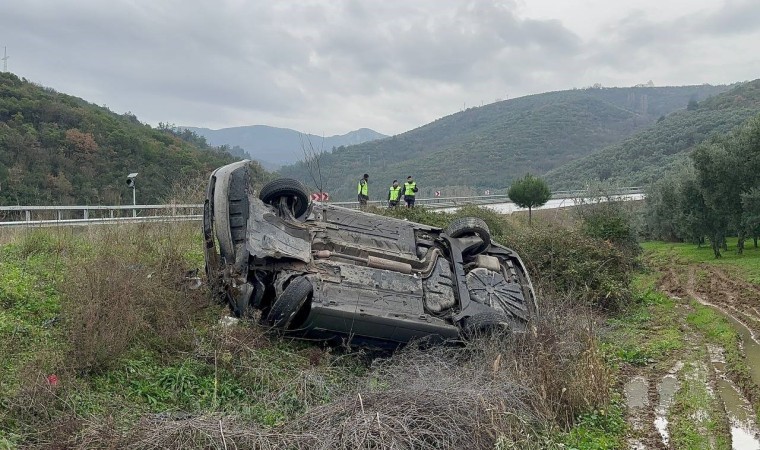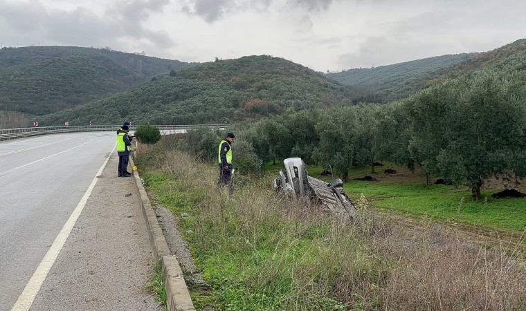 Bursa’da virajı alamayan otomobil, yerlerin de kaygan olması sebebiyle tarlaya uçtu. Otomobildeki 2 kişi, yaralı olarak hastaneye kaldırıldı.