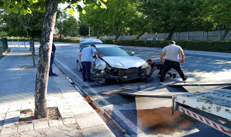 Eskişehir’de virajı dönerken kontrolden çıkan araç ağaca çarptı.