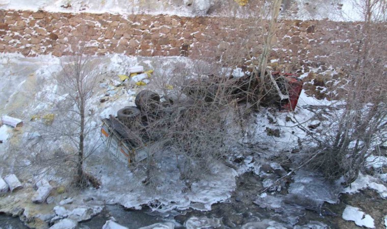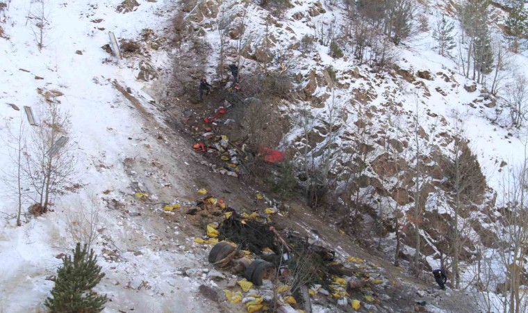 Sivas’ın Suşehri ilçesi Geminbeli geçidinde virajı alamayan kamyon yaklaşık 100 metrelik uçurumdan aşağı uçtu. Kazada sürücü hayatını kaybetti.