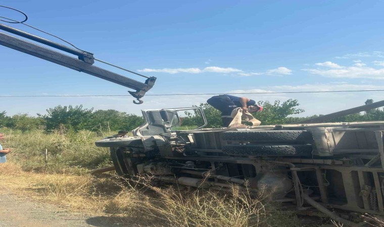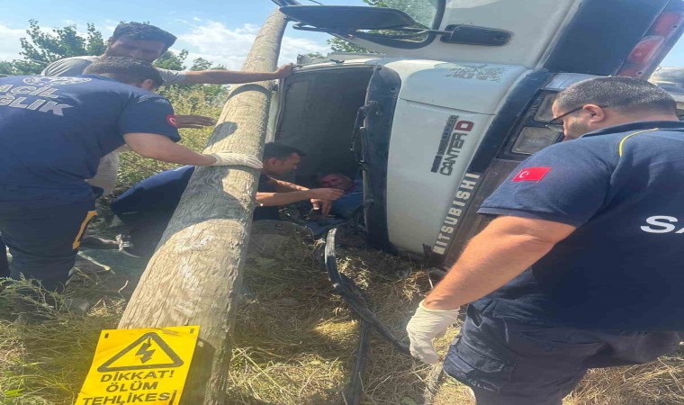 Iğdır’da virajı alamayan kamyon direğe çarparak devrildi. Kazada araç içerisinde sıkışan sürücü ekipler tarafından kurtarıldı.