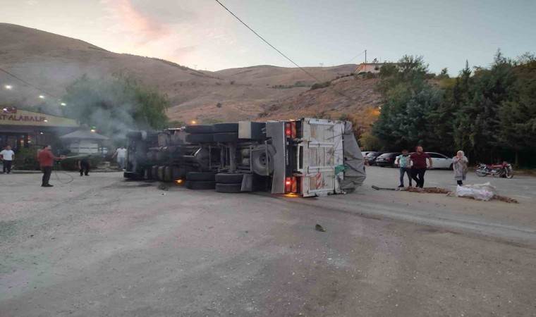 Elazığ’ın Keban ilçesinde kamyonun virajı alamayarak yan yatması sonucu 5 kişi yaralandı.