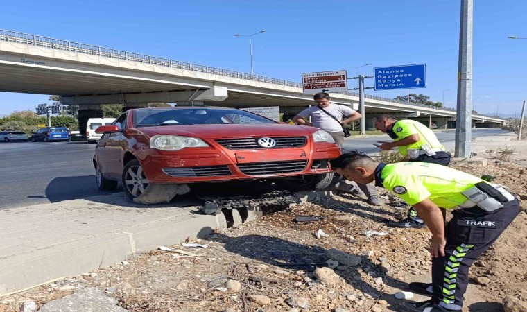 Kaza, dün Zübeyde Hanım Caddesi’nde meydana geldi. Alanya yönüne giden Constantin Viktor Kartal’ın kullandığı 07 L 0111 plakalı otomobil çevre yoluna döndüğü sırada sürücüsünün kontrolünden çıkarak yolun karşısındaki kaldırıma çıktı. Kaldırımda askıda kalan otomobil sürücüsü kazayı yara almadan atlatırken ekiplerin önlem aldığı yoldan otomobil çekici yardımıyla kaldırıldı.