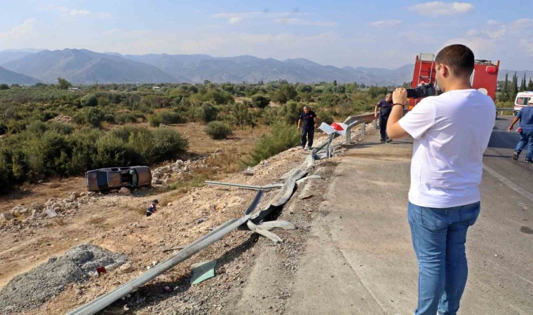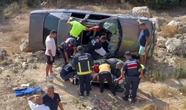Antalya’da virajı alamayan otomobil çelik bariyerlere çarpıp takla atarak 10 metrelik uçurumdan aşağı yuvarlandı. Kazada araçta sıkışan bir kadın itfaiye ekipleri tarafınca kurtarılırken, diğer 3 yaralı da çevredekilerin yardımıyla araçtan çıkarıldı.