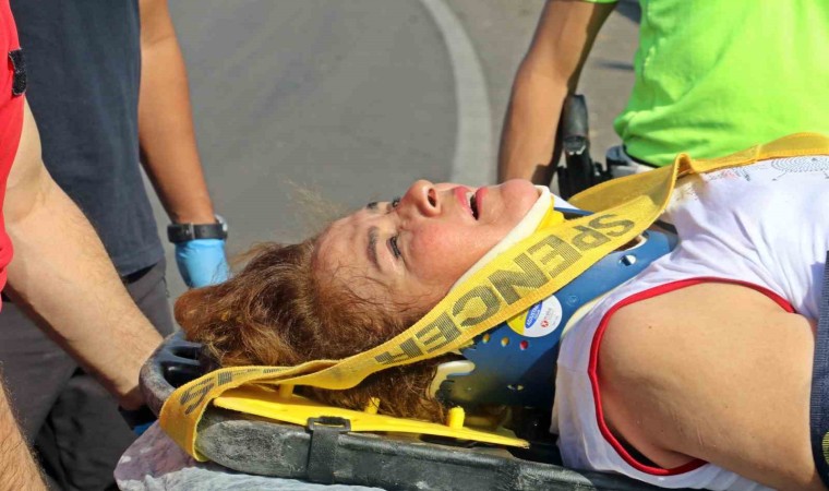 Acı çeken yaralı kadın ve diğer yaralılar tedavi için ambulansla çevredeki hastanelere götürüldü.