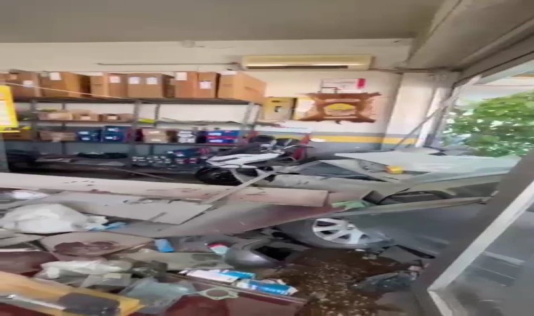 Denizli’nin Merkezefendi ilçesinde virajı alamayınca kontrolden çıkan otomobil, son sürat bir tamirhaneye daldı. Otomobilin ortalığı savaş alanına çevirdiği kazanın güvenlik kamera kayıtları ortaya çıktı.