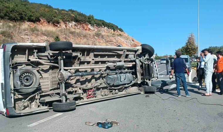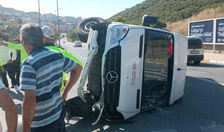 Kocaeli’nin Gebze ilçesinde virajı alamayarak devrilen servis minibüsü sürüklenerek durabildi. Kazada sürücü yaralandı.
